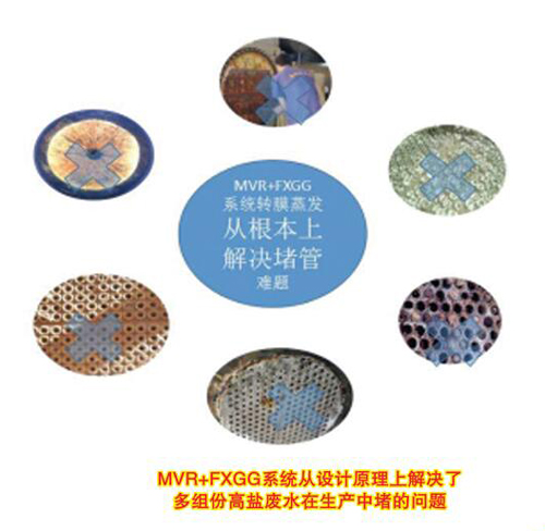 MVR—FXGG型濃縮蒸發(fā)系統(tǒng)是由MVR蒸汽壓縮機(jī)和連續(xù)轉(zhuǎn)膜蒸發(fā)器共同組合而成的蒸發(fā)、深度濃縮、結(jié)晶和干燥的系統(tǒng),是目前先進(jìn)的、耗能低的蒸發(fā)系統(tǒng)。尤其在多組分無(wú)法分離的廢水處理上,終點(diǎn)可以做成膠體或干品。