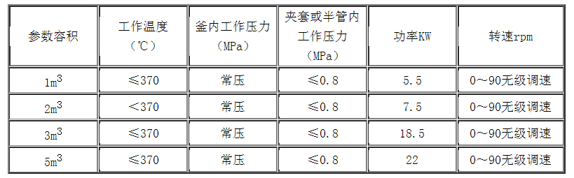 雙軸互逆攪拌反應(yīng)釜性能參數(shù)
